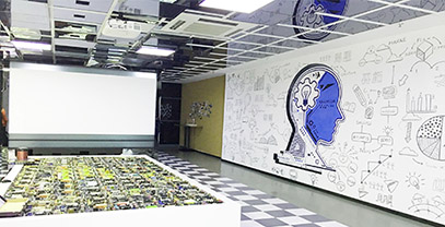 展廳多媒體設計制作商晟跡創(chuàng)意融合數(shù)字多媒體技術:電子沙盤、動態(tài)感應系統(tǒng)、綠幕摳像來實現(xiàn)數(shù)字化展館與參觀者互動。